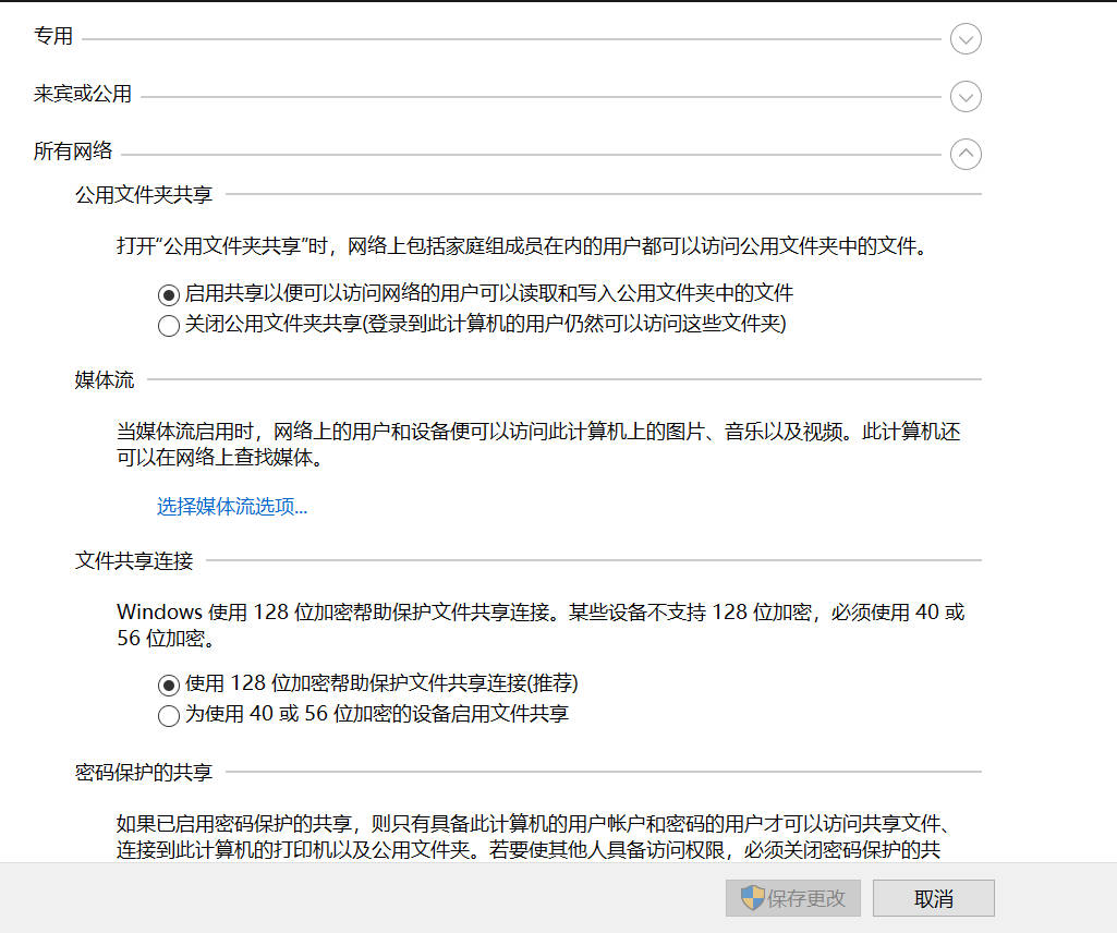 检查网络共享中心的设置,专用,公用,所有的都开启网路共享
