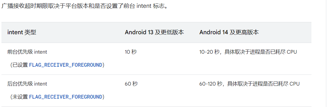 • 有一个 BroadcastReceiver 目前正在运行(其 BroadcastReceiver.onReceive() 方法正在执行)