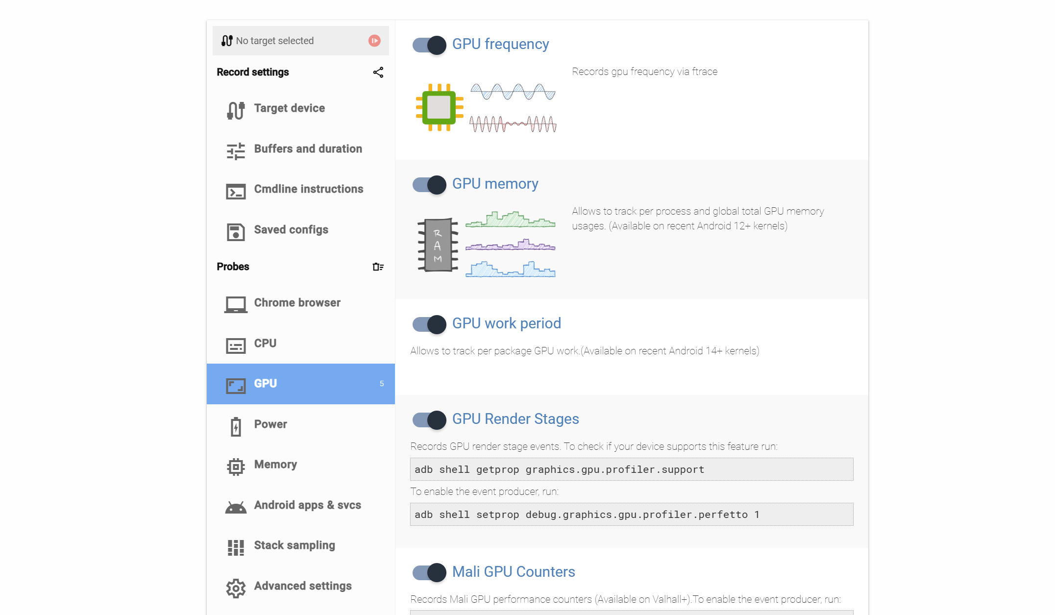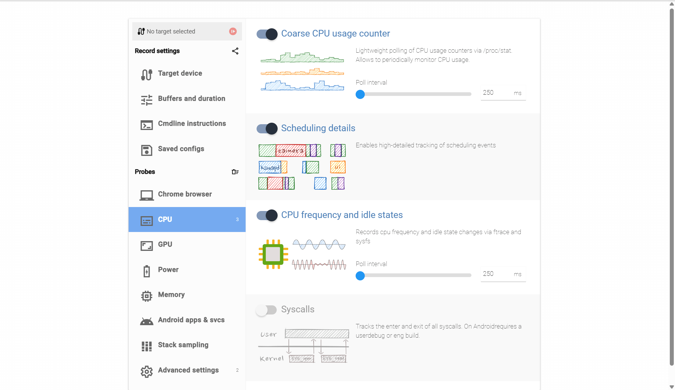 我们还可以在新版的perfetto网站上直接采用图形化的方式去生成配置文件的代码: