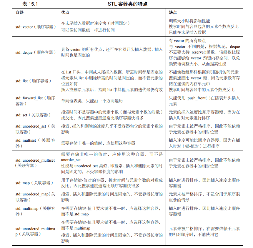 - std::deque:与 std::vector 类似,但允许在开头插入或删除元素。