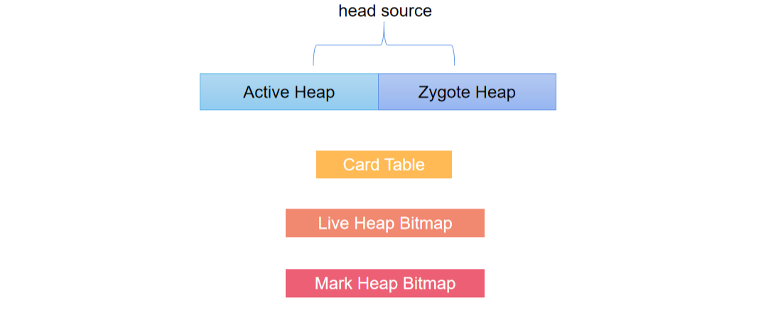 Dalvik的堆空间,分为zygote heap 和 active heap。前者主要存放一些在zygote时就分配的对象,后者主要用于之后新分配的空间,