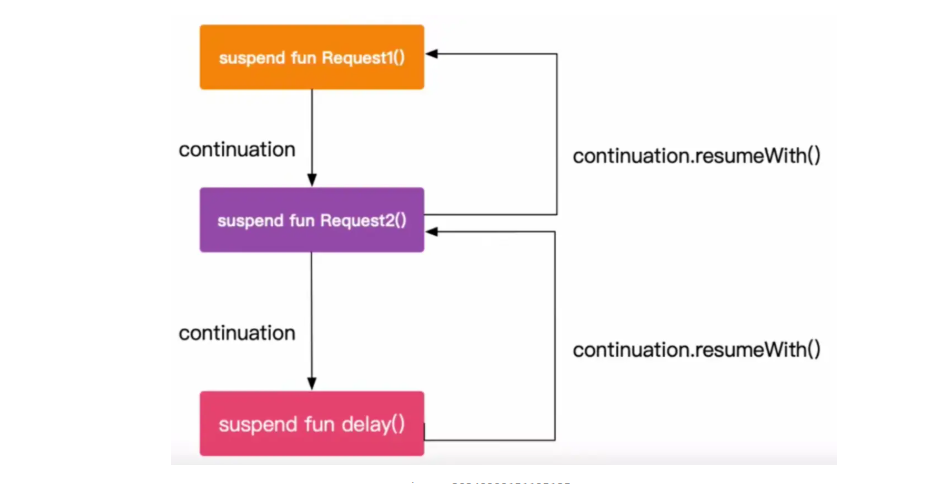 2. 函数的执行过程中,遇到挂起操作时,会将当前的Continuation对象传递给挂起函数。