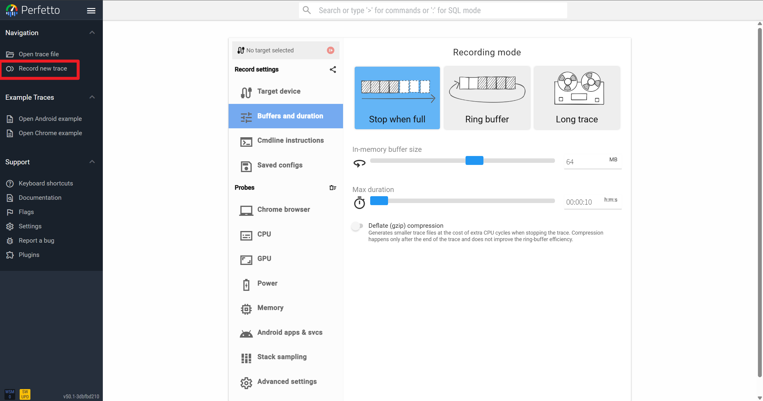 我们还可以在新版的perfetto网站上直接采用图形化的方式去生成配置文件的代码: