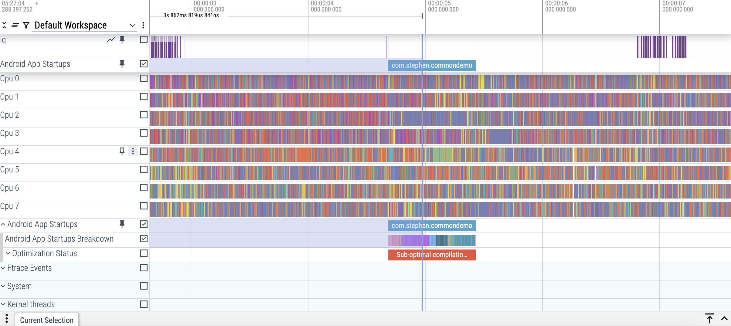 4. 结合 CPU Profiler 的调用栈分析: 如果你使用的是 Android Studio CPU Profiler 的 “System Trace” 模式,并同时捕获了方法追踪数据(或者在 Perfetto 中启用了 CPU 采样),你可以: