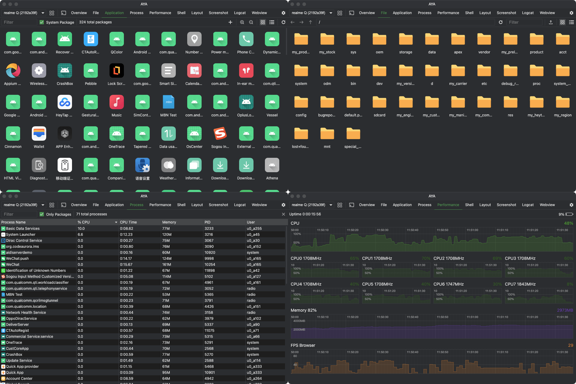 AYA也是一个基于adb命令来显示Android设备信息,进行调试的项目,同样为跨平台的产品形态。